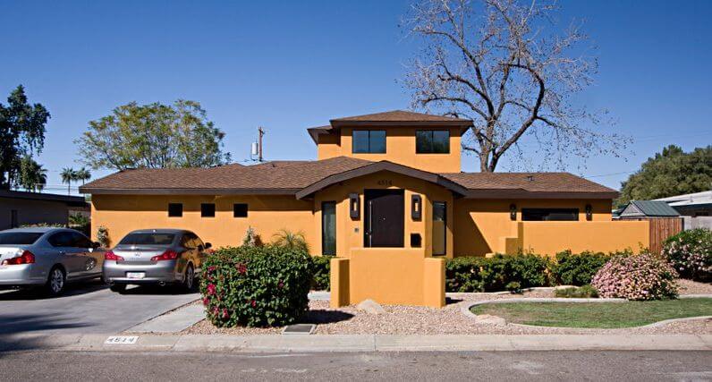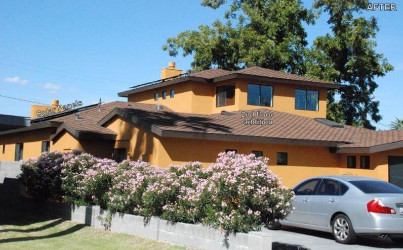 By setting the second floor addition to the rear of the home and leaving the front areas seemingly untouched the new structure does not impose into the street-scape.