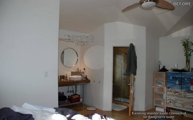 The existing home had a small bedroom with an open wash area in the room. The toilet and shower with housed in separate room. The closet was very small.