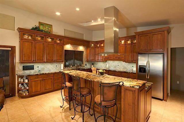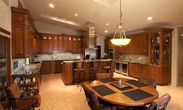 Removing soffits & redesigning the HVAC system opened the ceiling for a more expansive feel, while removing a room-dividing counter & cabinets transformed two smaller spaces into a great room in this Fountain Hills kitchen remodel.
