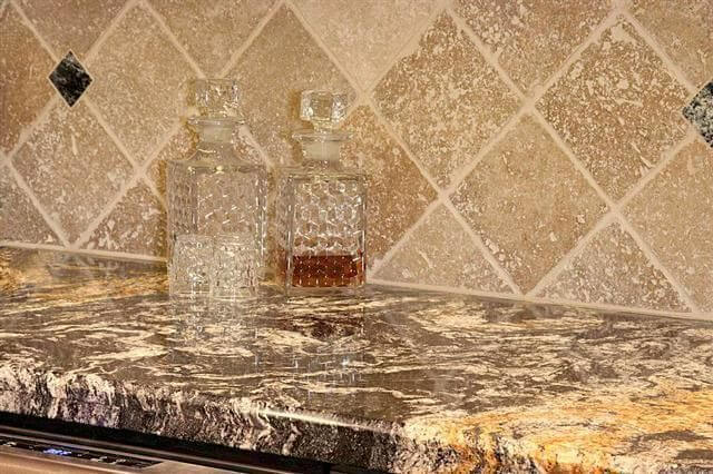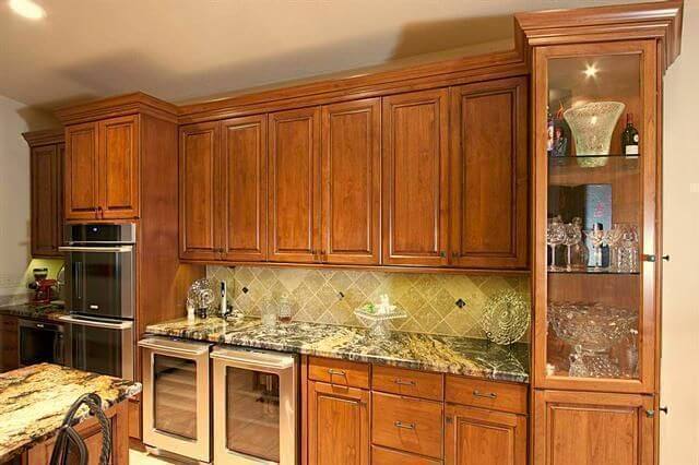 A glass cabinet door allows the clients to showcase the fine crystal.