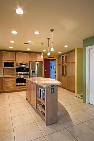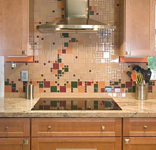 This kitchen reflects the client’s love of color & simplicity with a bold backsplash & wall colors offsetting stainless steel appliances & contemporary cabinets in this Mesa kitchen remodel.