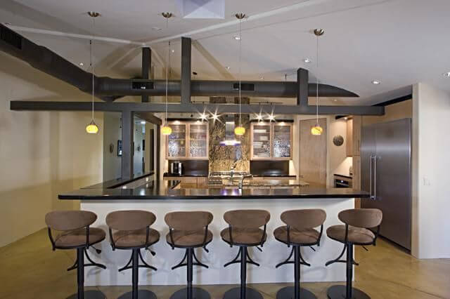 Many unique features are evident in the kitchen of this contemporary Phoenix remodeling project, which was named winner of a 2010 regional NARI Contractor of the Year award.